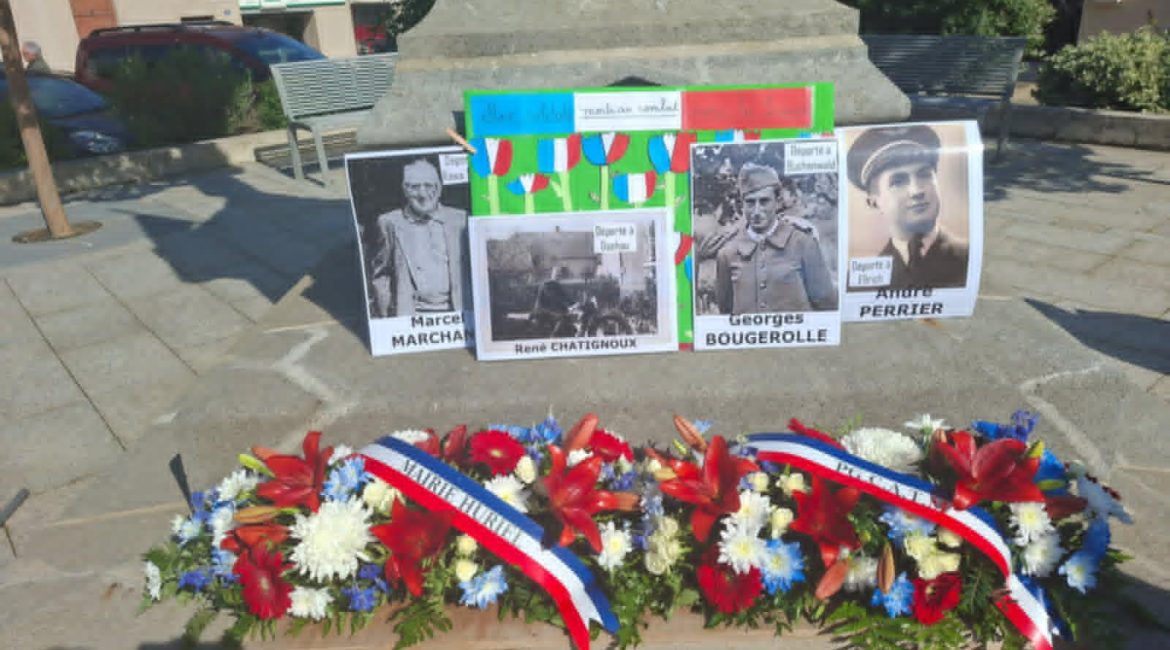 A cette occasion, le Maire du Conseil Municipal Jeune à lu un poème pendant que les enfants de l’accueil périscolaire ont déposé les portraits des 4 déportés d’Huriel : Marcel Marchand, René Chatignoux, Georges Bougerolles et André Perrier, auxquels Serge Dumont a rendu hommage en lisant un texte émouvant. Le reste de la cérémonie s’est déroulé sous un soleil radieux.